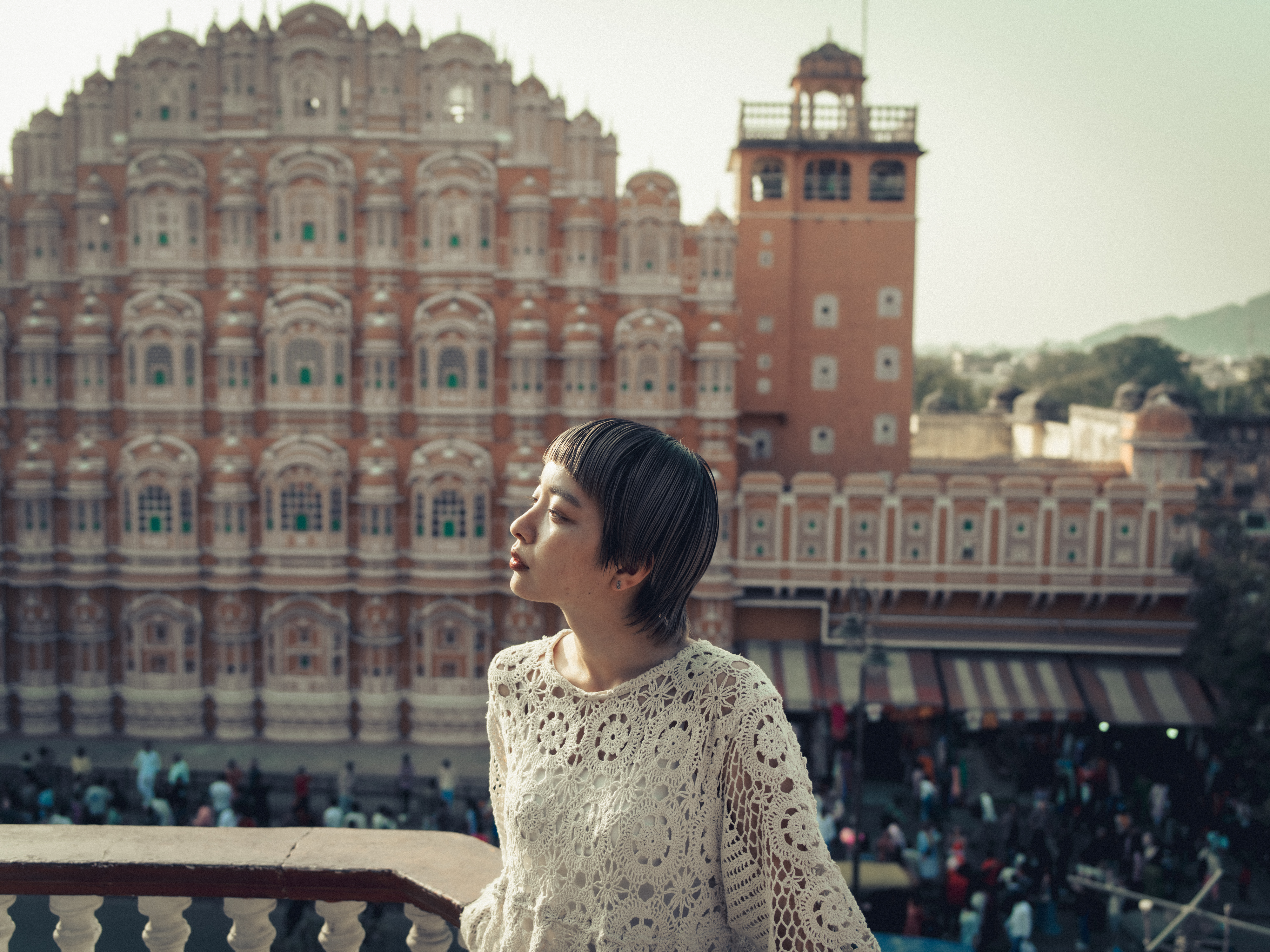 こちらのカットはピンクシティーの中心にあるハワーマハル(風の宮殿)前のカフェのテラスでのカット